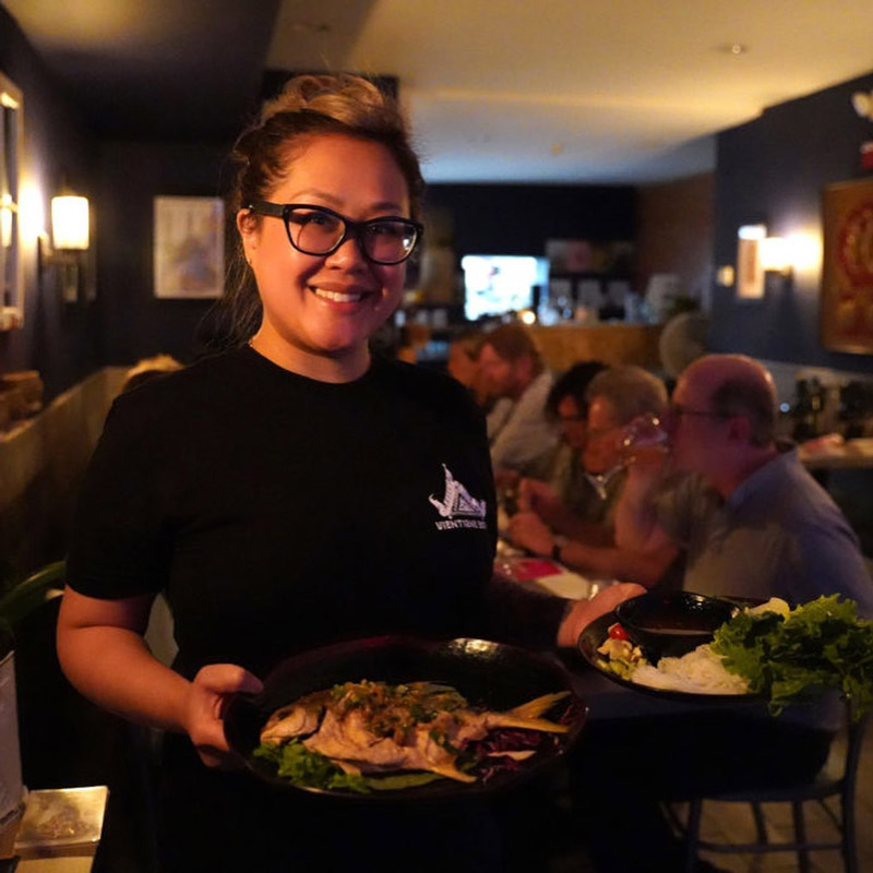 Bistro de Vientiane Sirve cocina tradicional lao-tailandesa con opciones veganas, vegetarianas y sin gluten, además de carnes. Puedes comprar tarjetas de regalo en el restaurante o puedes pedir la entrega a domicilio a través de GrubHub or UberEatsLa sucursal de Kensingston del bistró en 2537 Kensington Ave. está abierta de martes a sábado de 12:30 p. m. a 8 p. m.