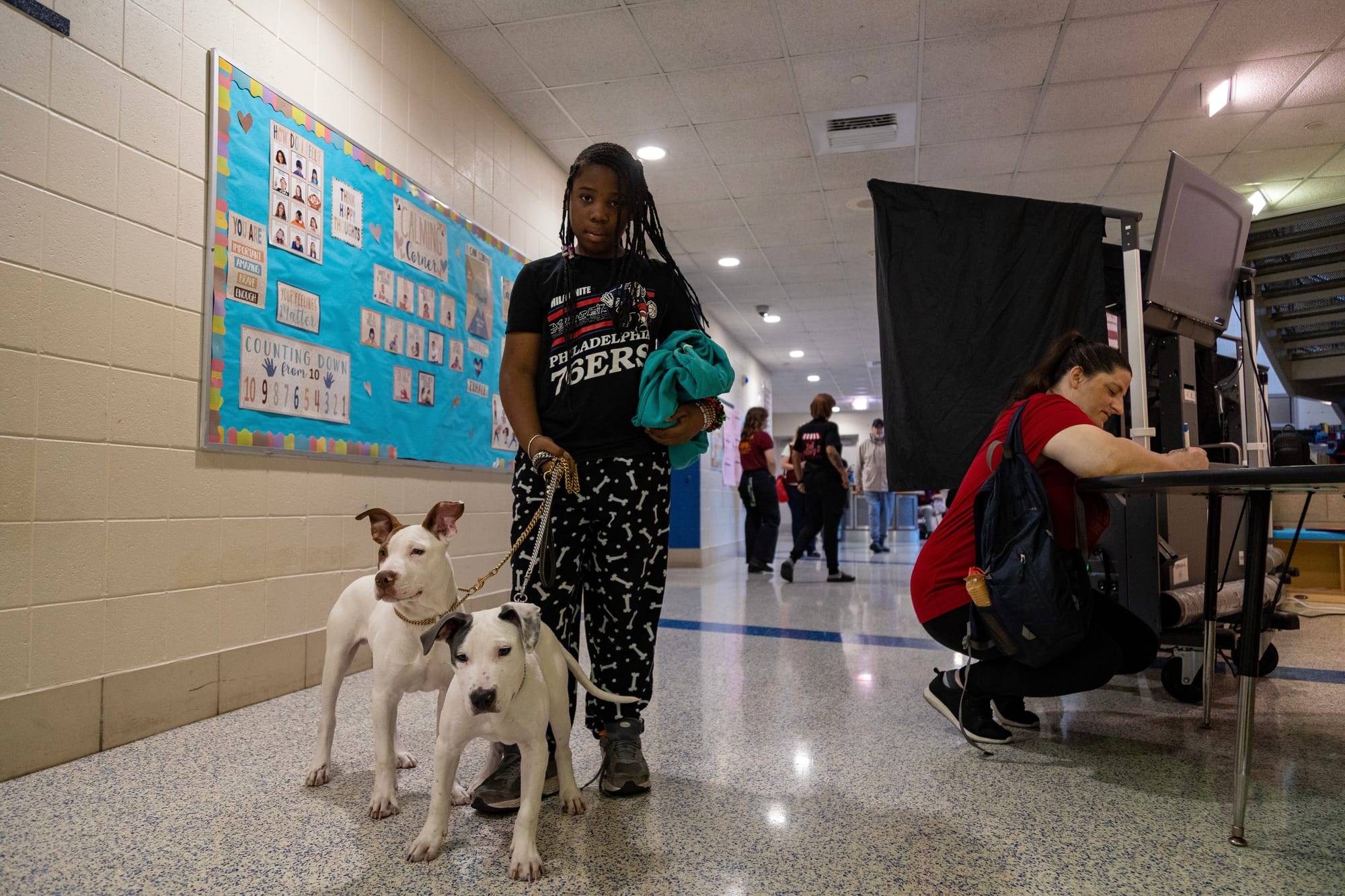 En el Centro de Recreación Heitzman en Harrowgate, una fila se extendió hasta la puerta por primera vez en varias elecciones presidenciales, según la miembro del comité del Distrito 45, Erin Farrell.