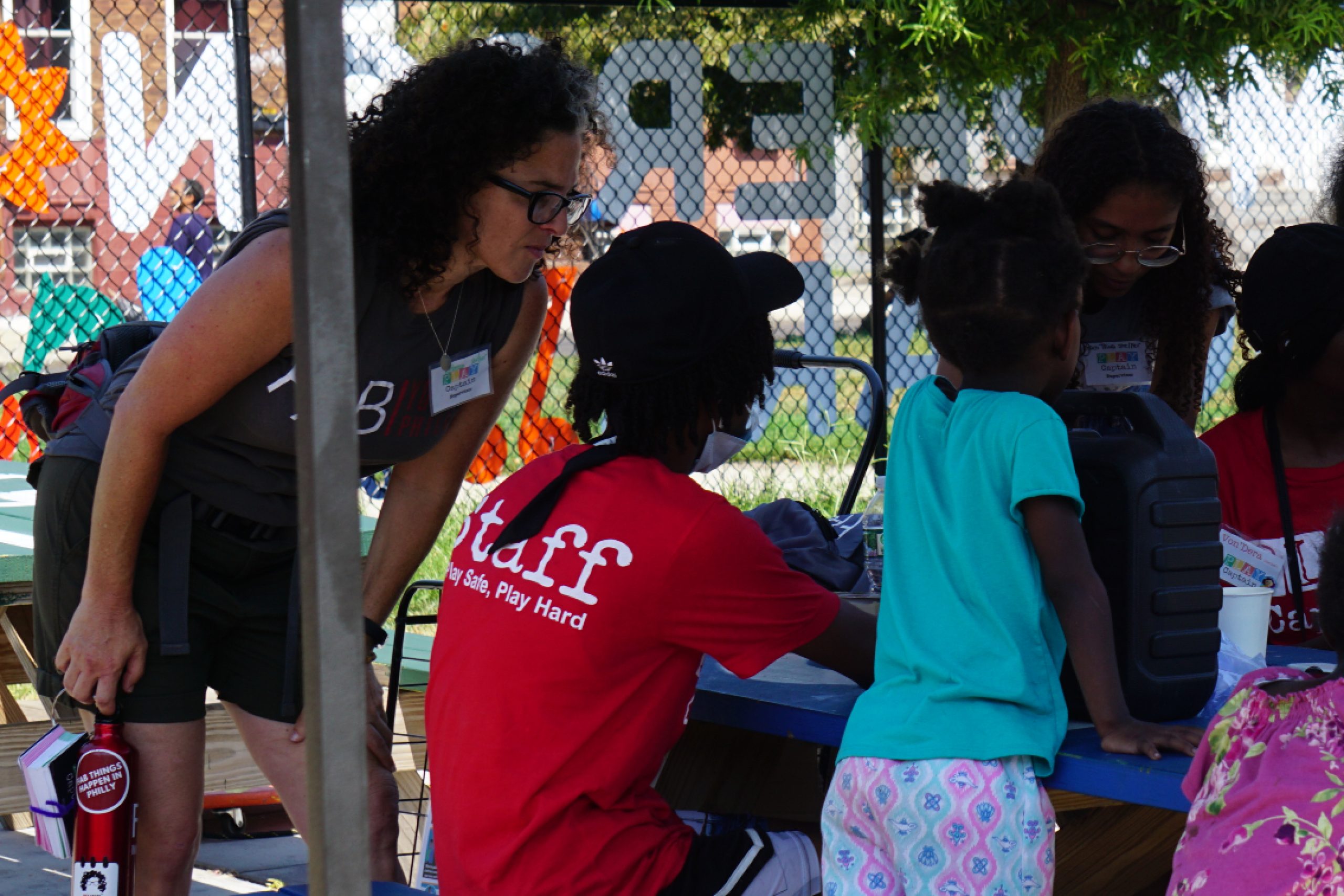 Los juegos comenzaron más temprano esa mañana cuando un grupo de capitanes de juegos adolescentes llegaron a la cuadra con un carrito lleno de equipos deportivos y libros de actividades. Este equipo de adolescentes están a cargo de la diversión en el programa. Calles de juego, las cuadras designadas que el Departamento de Parques y Recreación de la ciudad bloquea al tráfico con el propósito de proporcionar enriquecimiento y comidas gratis a los niños.
