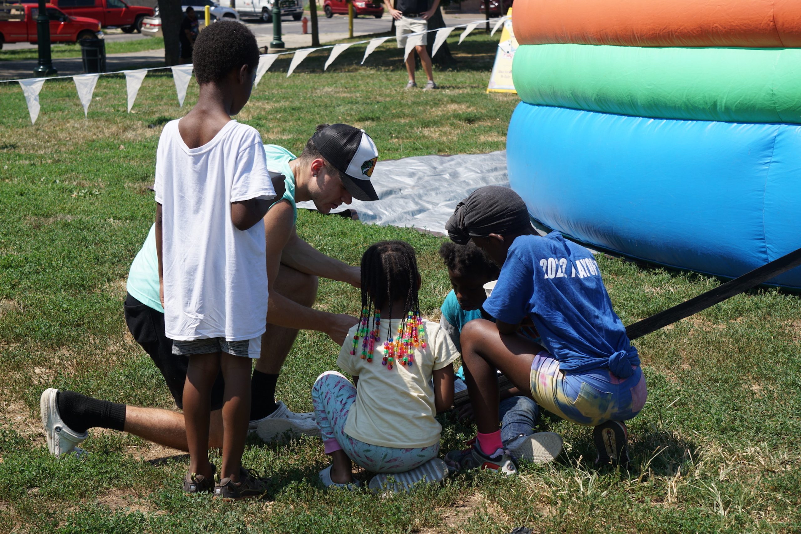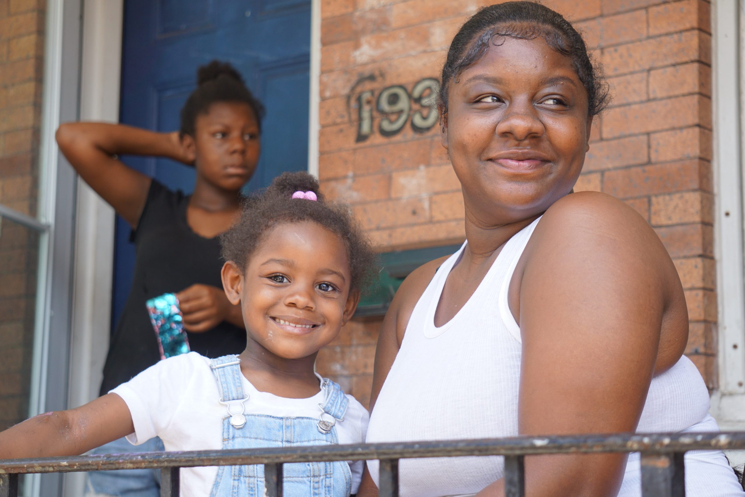 Kiara Askins estaba sentada en su porche en la calle Thayer con su hija de 4 años cuando los capitanes de Playstreets aparecieron una mañana reciente para involucrar a los niños del vecindario.