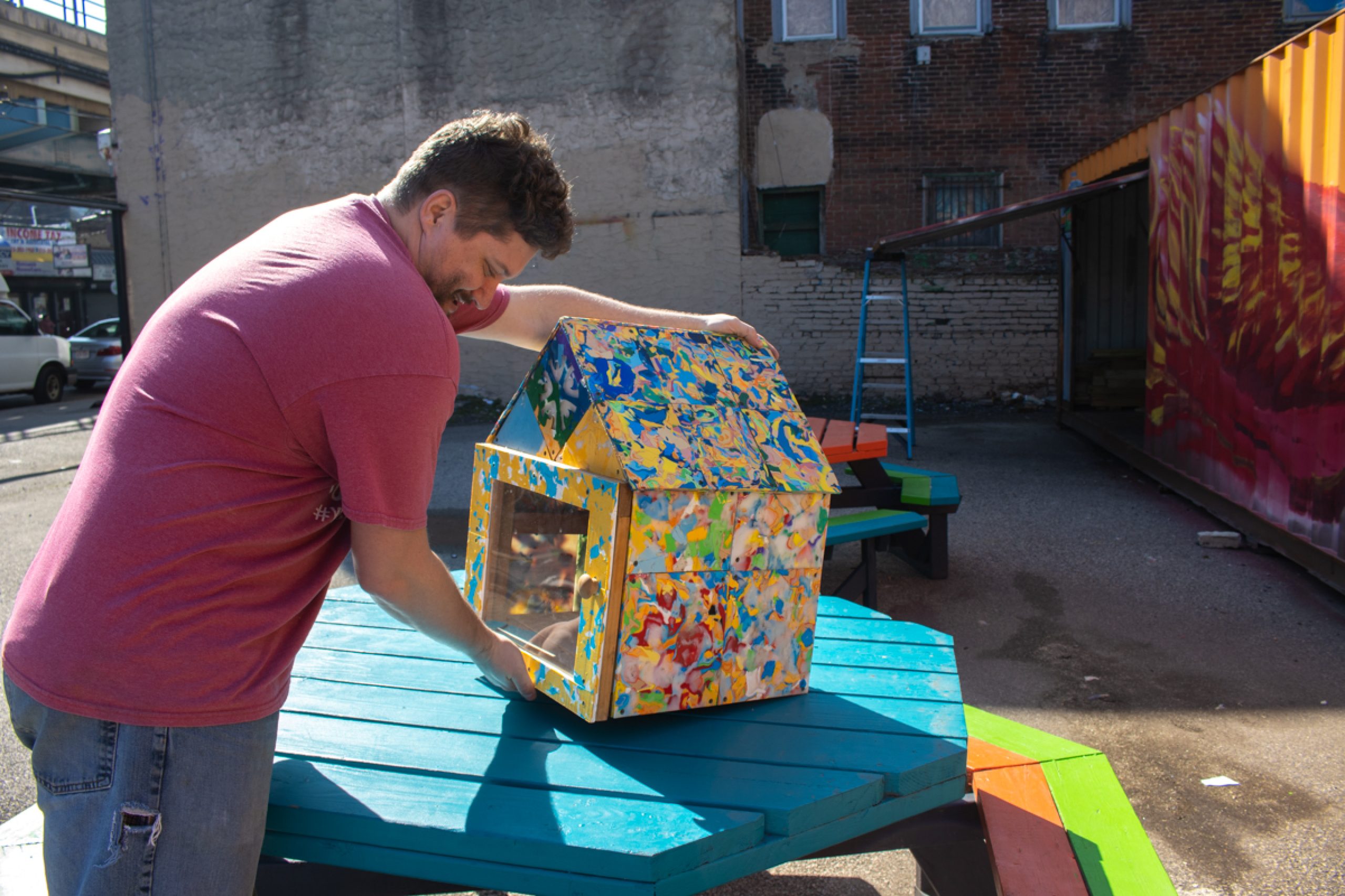 La primavera pasada, los estudiantes de We Love Philly se reunieron con Lynch dos veces al mes para obtener su opinión mientras trabajaban en el diseño del contenedor en el One Art Community Center. Después de finalizar el plan de construcción, el grupo imprimió un modelo 3D y pidió los materiales necesarios.